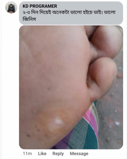 - ৩–৪ দিনের মধ্যেই কর্ন নরম হয়ে যাবে। তখন ধীরে ধীরে তুলা বা পিউমিক স্টোন দিয়ে ঘষে তুলে ফেলতে পারবেন।